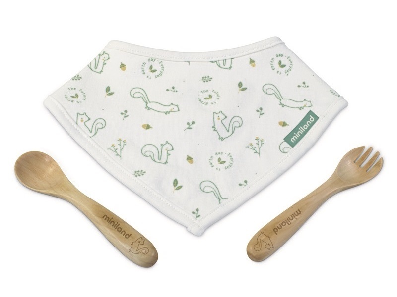 Miniland ECO-friendly Sada ekologických příborů s bryndákem, Veverka
