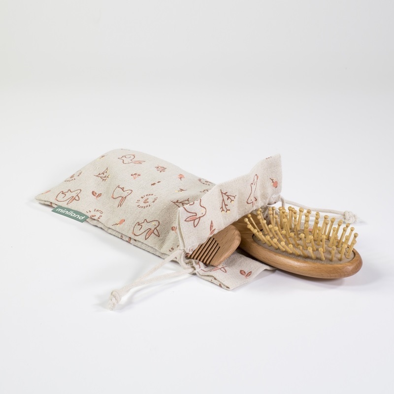 Miniland ECO-friendly sada na péči o dítě je kompletní řešení pro jemnou a šetrnou péči o dětské vlásky. Tato sada, která spojuje kvalitní přírodní materiály a funkční design, je ideální volbou pro rodiče, kteří se chtějí o své dítě i o planetu starat s stejnou láskou.