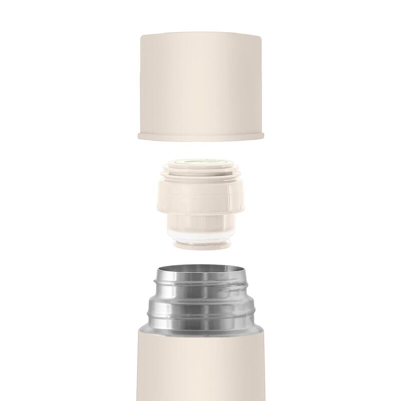 Termofor Miniland Ocean se může pochlubit jednoduchým systémem nalévání a uzamykání „klikni, zavři“. Díky tomu můžete termofor otevřít a zavřít jedním prstem bez nutnosti odšroubování vnitřní zátky. Celý ventil a uzávěr jsou odnímatelné, což umožňuje jejich důkladné čištění a udržování hygieny. Uzávěr zároveň slouží také jako praktický pohár.