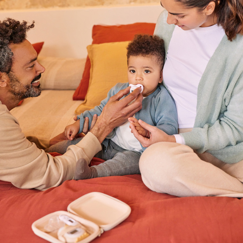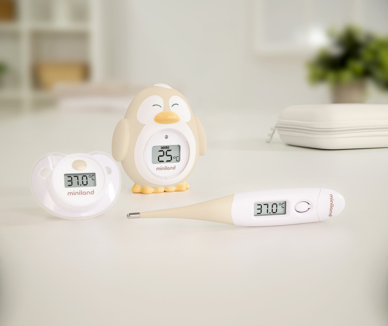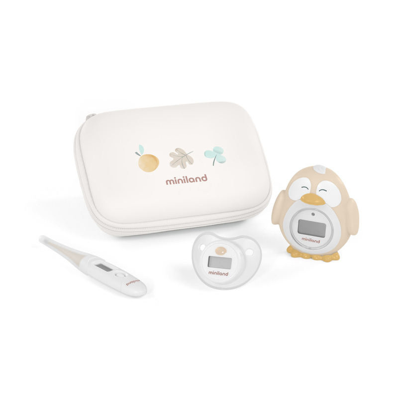Miniland Valencia prináša kompletnú sadu digitálnych teplomerov, ktorá je určená na jednoduché a presné meranie teploty vášho dieťaťa v každej situácii. Sada obsahuje teplomer Flexi, teplomer do kúpeľa a teplomer cumlík, ktoré sú uložené v praktickom puzdre. Vďaka tomu ich máte vždy po ruke pre bezpečné a spoľahlivé monitorovanie.