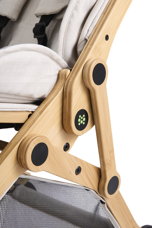 Srdečním bodem kočárku je bambus a hliník. V konstrukci nenajdete žádné nadbytečné plastové prvky – vše je spojeno šrouby a maticemi, což zaručuje dlouhou životnost a jednoduchou opravitelnost. Tkaniny sedadla pocházejí z recyklovaných materiálů, čímž uzavírají kruh ekologické odpovědnosti.